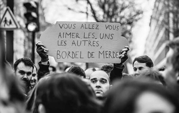 L'idéologie qui façonne le terrorisme, c'est le capitalisme et son impérialisme : en prenant tout pour les plus riches ; en faisant la guerre pour voler des continents entiers, en Irak, en Syrie, en Libye et tant d'autres pays ; en faisant la Françafrique et le Franc CFA ; en organisant la famine alors qu'on produit assez de nourriture pour 2 fois la population planétaire ; en offrant aux populations les plus pauvres, en France, en Europe et dans les pays industrialisés, comme horizon de vie de bosser pour un salaire de misère, dans des conditions déplorables, en mourant sans rien posséder d'autre que quelques habits et une alliance, persécutés par la police, parce qu'il faut soit disant "faire des efforts" alors que vous et vos semblables ne faites que vous goinfrer toujours plus ; en prétendant qu'il n'y a pas d'alternative à la merde immonde que vous nous proposez ; en prétendant qu'il n'y a rien de plus beau que de sacrifier sa vie au nom d'une nation, cette nation qui n'a aucune substance autre que celle que vous avez décidé, dans votre coin, sans consulter personne ; en faisant croire que le problème, c'est l'étranger alors que le problème c'est le capitalisme.