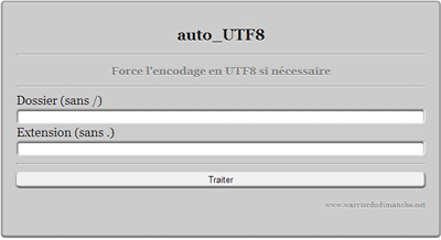 Ayéééééééééééééé !  Vu que pour mercredi prochain, j'ai concocté un autre truc très utile et que j'ai dû faire un formulaire, je l'ai adapté à auto_UTF8... Si des virils préfèrent la version sans formulaire, je la laisse